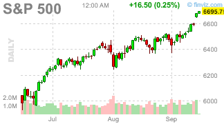 The S&P was at 6,373 for our Aug 12th Portfolio Review and now we're at 6,615 - up 3.7% for the month and that's fine with us as we decided last month to "go with the flow" and follow the Oligarchy - betting on the rich to get richer. This month, however, we'll be looking to take a little off the table and move back towards 50% CASH!!! - because this is just getting silly(er - again!) as the markets are getting ahead of themselves and there's nothing Powell can do tomorrow to justify and 11.666% run since June.