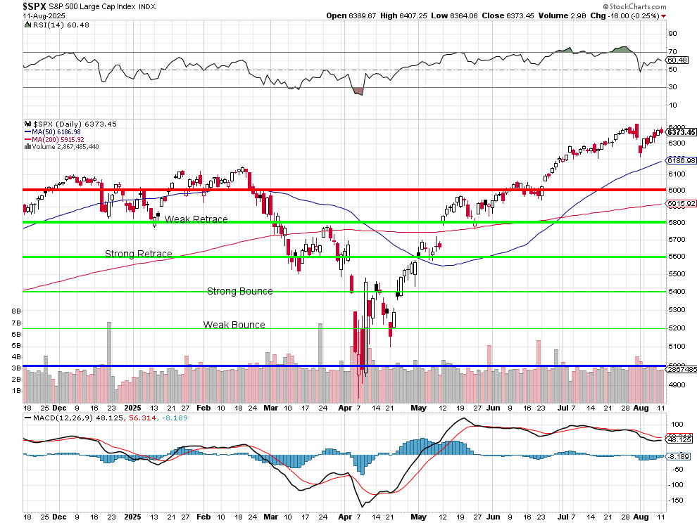 Since July 15th, the S&P 500 has climbed 105 points: from 6,268 to 6,373 (1.6%) but RSI has fallen from a stressed 68.74 to a more neutral 60.48 after taking a dip to 50 at the end of July. The VIX has remained suspiciously calm at around 17 – the kind of complacency that usually precedes "interesting times." As usual (these days), the Magnificent Tech Sector and their Bankers are having THE BEST time - while the rest of the market struggles.