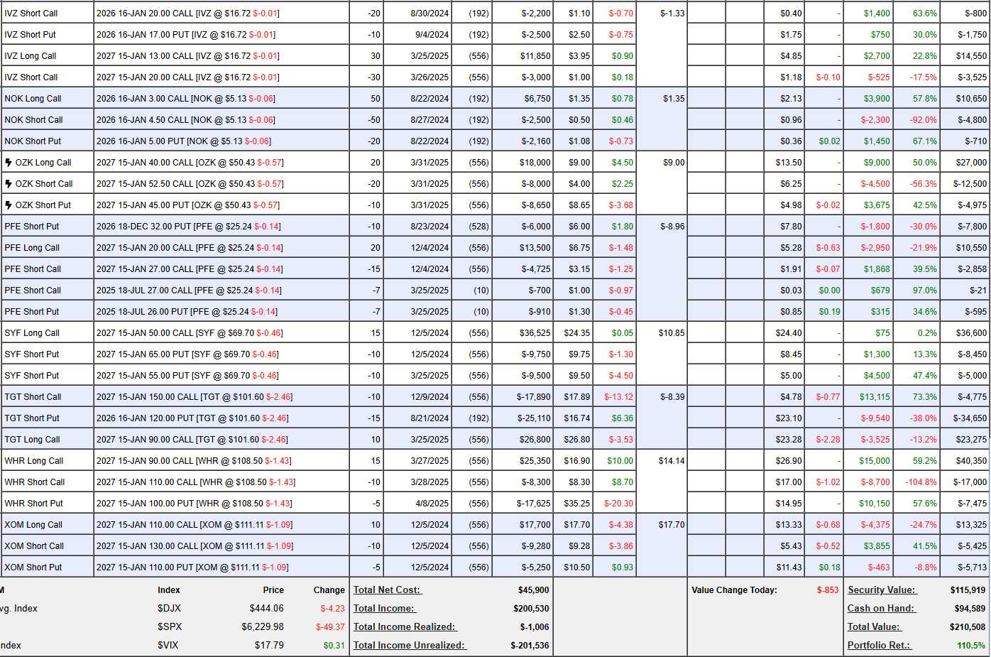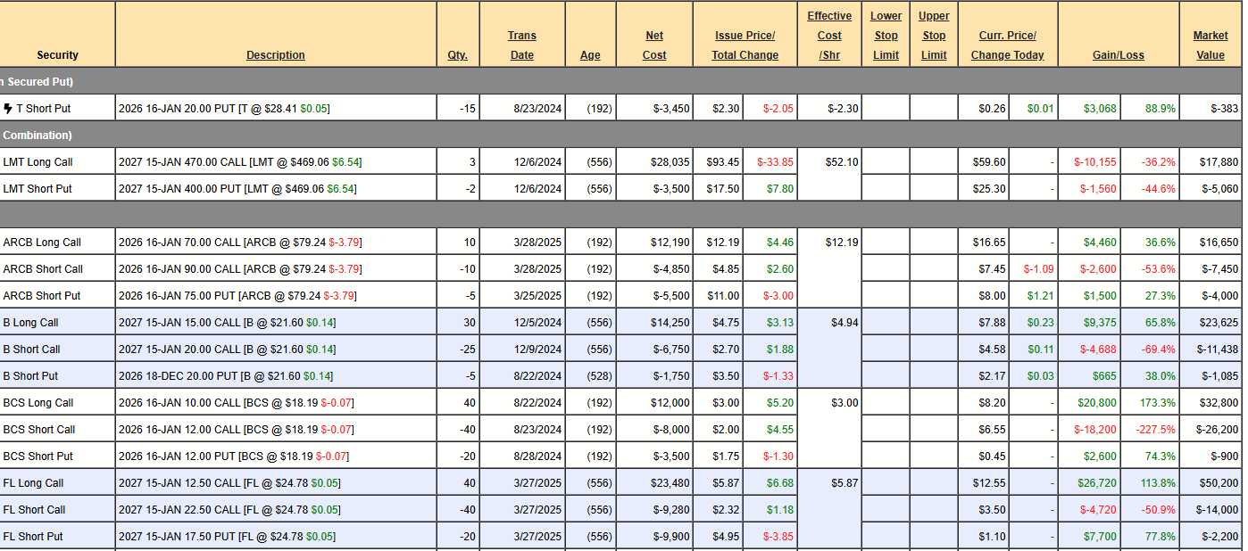 • IVZ – This one is right on track at net $8,475 on the $21,000 spread so we have $12,525 (147%) upside potential and some 2026 income potential as well.