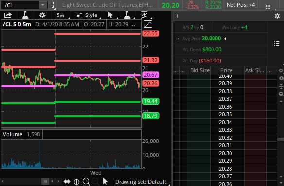 We've been playing the Oil Futures (/CL) long off the $20 line with tight stops below and, at the moment, there are 4 open contracts that are up slightly.  I should have taken them off the table at $20.50 this morning but I was writing this article and missed it!  Inventories are 10:30 and super-risky as we'll likey have a big build and there's no sign Russia and OPEC are cooperating at all so oil COULD go lower but all that is expected so I think maybe a bit of relief from lack of shock.  BUT (and I like Big Buts) I will be shocked if we're not at $30 by July – and that would be up $10,000 per contract from here.