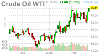 As usual with Trump’s tariffs – no authorization, not even a discussion – just a rage-tweet from his toilet at 2am. That kicked oil from $57 to $62, where it hung out until Feb 8th, when Trump signed an Executive Order on “Addressing Threats to the United States by the Government of Iran” which reaffirms the Iran‑related national emergency (originally EO 13846) and authorizes up to 25% tariffs on imports from countries doing business with Iran – still with no approval from Congress (not that he asked).