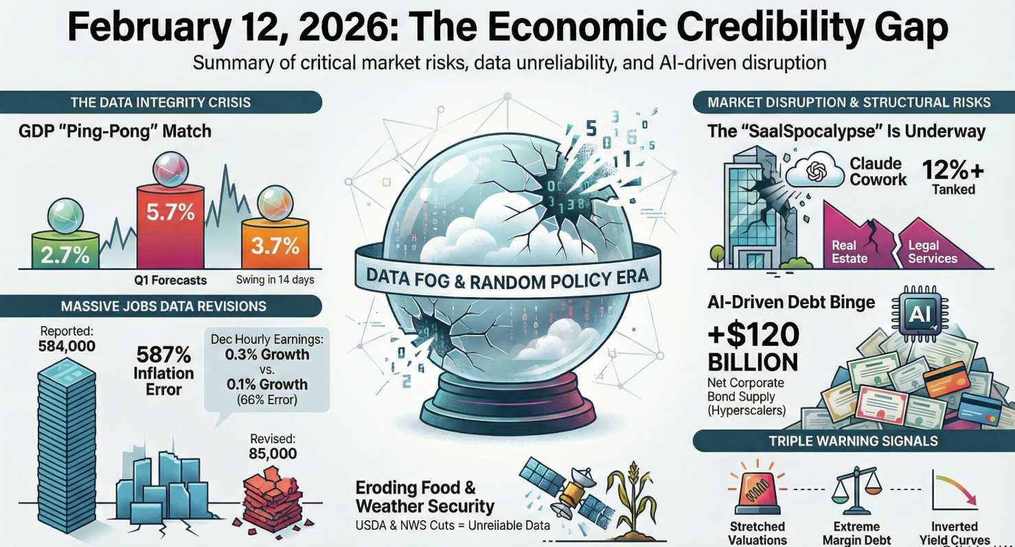 Premise: Are traders acting on “fear and superstition” or are they are “right to be getting out near the top?” The answer (and you are not going to like it…) is BOTH. The market is crashing on ghost stories about AI agents but it also SHOULD be correcting based on the math of valuations. We are distinguishing the “Scare Trade” (Superstition) from the “Valuation Wall” (Reality).