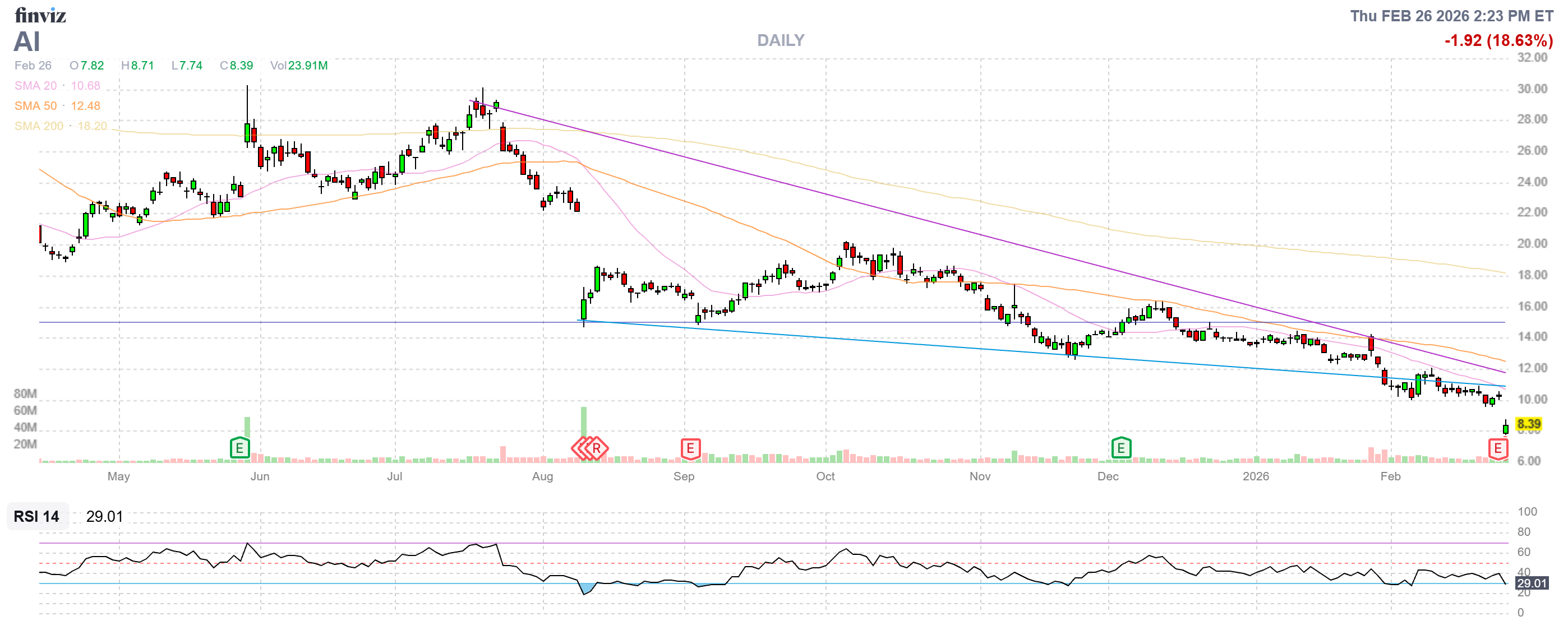 • Ongoing “AI panic” rotation. There’s still a broader sell‑off in perceived AI losers—SaaS, some cyber, C3.ai just blew up on bad numbers and layoffs—which feeds the narrative that AI capex is cannibalizing other parts of tech.finance.yahoo+2