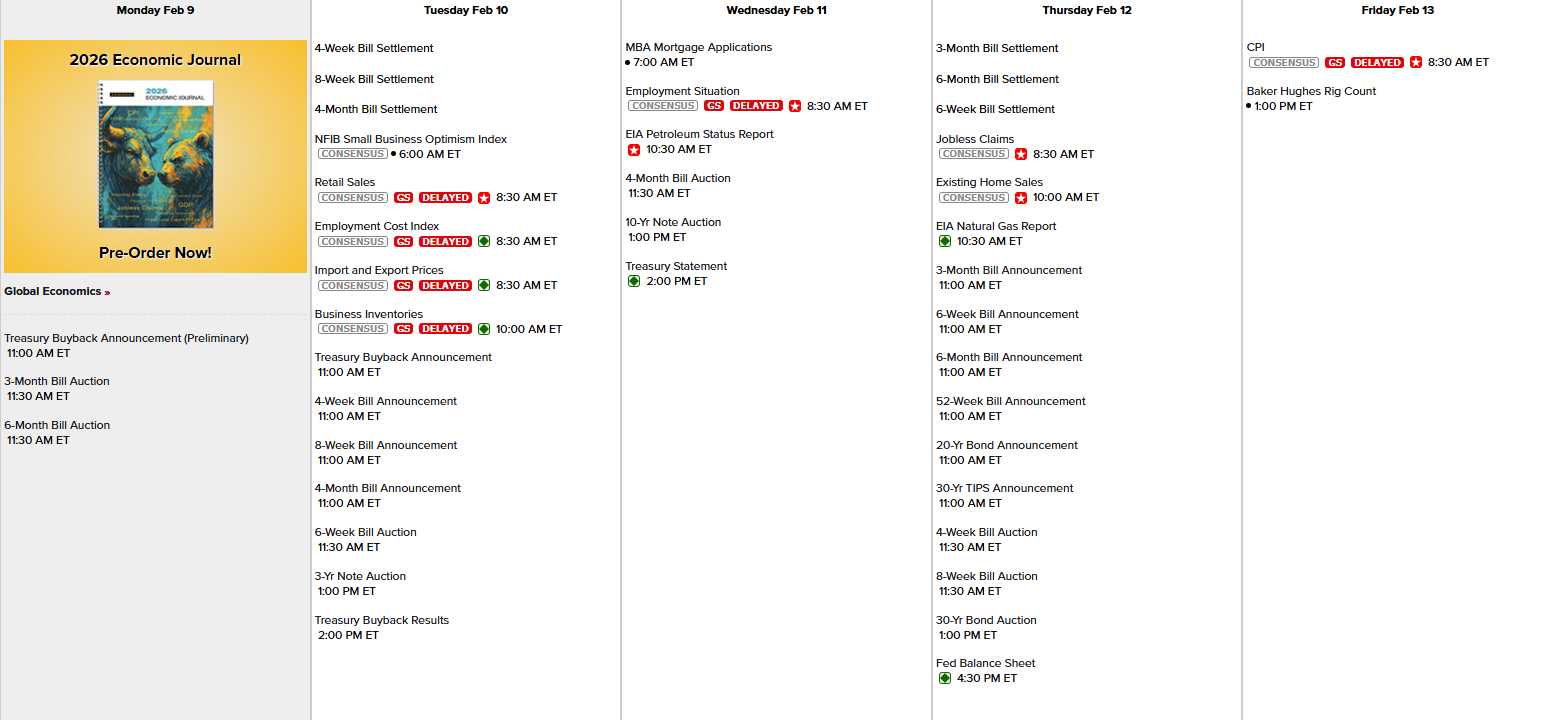The week ahead is a crowded one. Because of the partial government shutdown (remember that?), the January Jobs Report was delayed and will now drop on Wednesday. We also get the all-important CPI data on Friday. If Inflation looks sticky, the Fed’s “patience” will suddenly look like “paralysis” and investors will get worried fast!