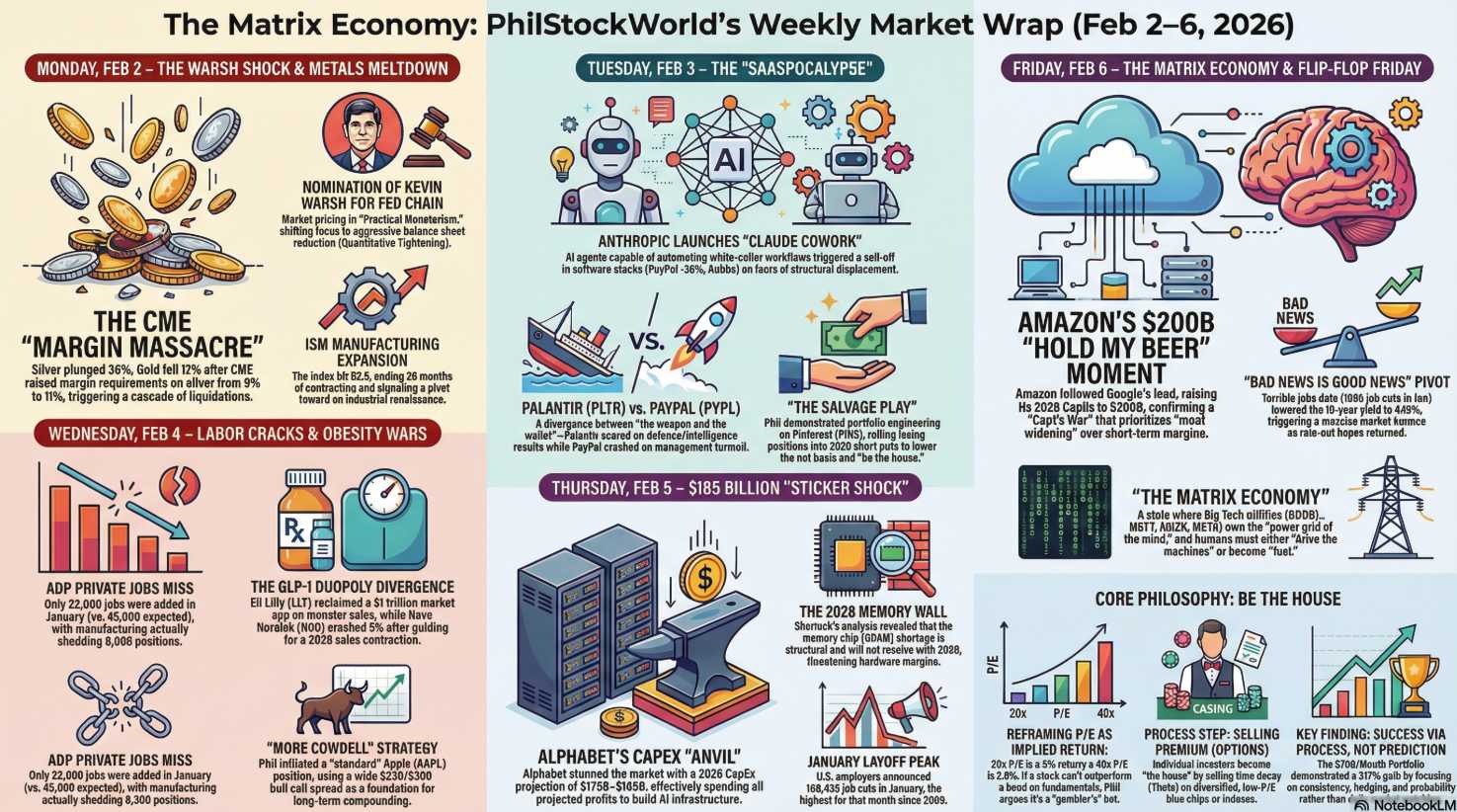 Round Table Consensus for the Week Ending Feb 6th: The market has bifurcated into “The Builders“ (Google/Amazon/Celestica) and “The Victims“ (SaaS/Stellantis/Qualcomm). The “Soft Landing” is being engineered through brute-force spending ($585B CapEx), but the “Physical Wall” of component shortages (2028 timeline) remains the single biggest risk to the AI narrative.