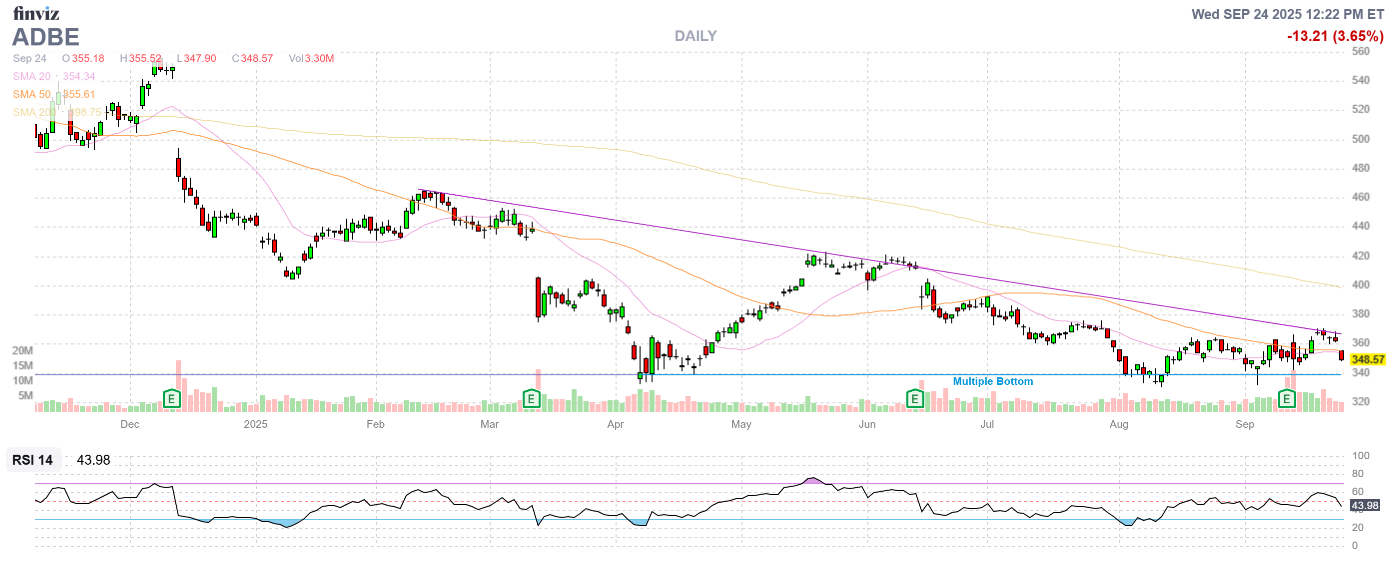 😎 ADBE just beat earnings and they ALWAYS beat earnings and MS almost went BK on 2008 so what do they know? P/E is 21.7 but forward P/E is 15 so huge growth is expected and they haven’t missed yet so I sure as shit wouldn’t short them!