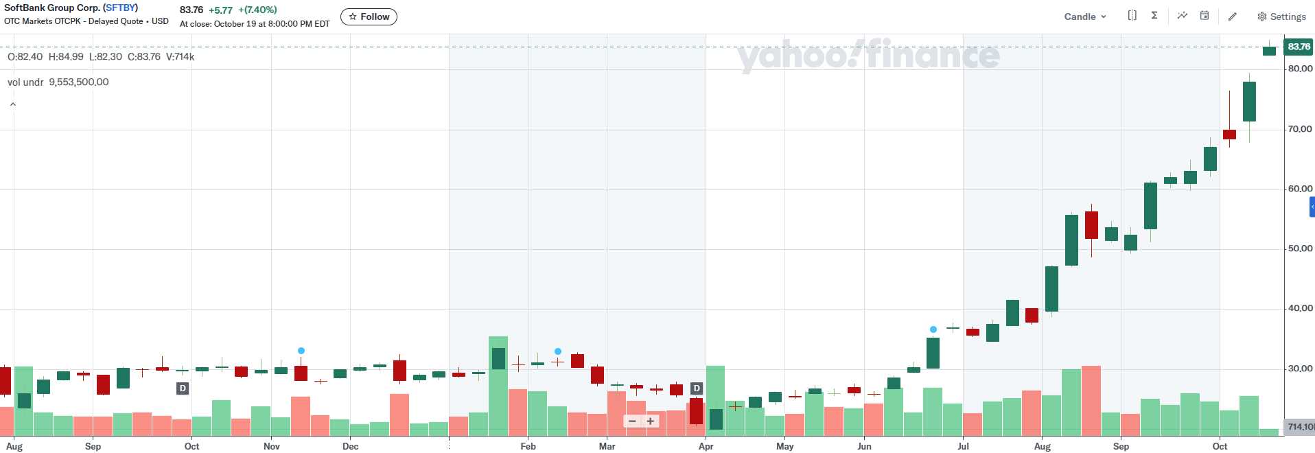- Key companies benefiting include SoftBank Group, which saw gains ahead of the premier vote and is up 176.46% year-to-date (as of Oct 21).