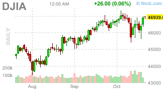 The Dow is at 46,726 and 5.2% of that came in Q3 but its rise has come this year at the expense of the US Dollar (the thing the Dow is priced in, which has fallen from 110 when Trump was sworn in (Jan 20th) to 98.67 as of yesterday – that’s down 10.3% for the Dollar – more than the Dow rose to compensate – even with NVDA adding 35.6% ($1.25Tn!), CAT jumping 46.9%, JNJ 33.65%, GS 32.4%, IBM 23.3%, JPM 26.2%, MSFT 22.6% and even BA took off – up 22.2% this year…
