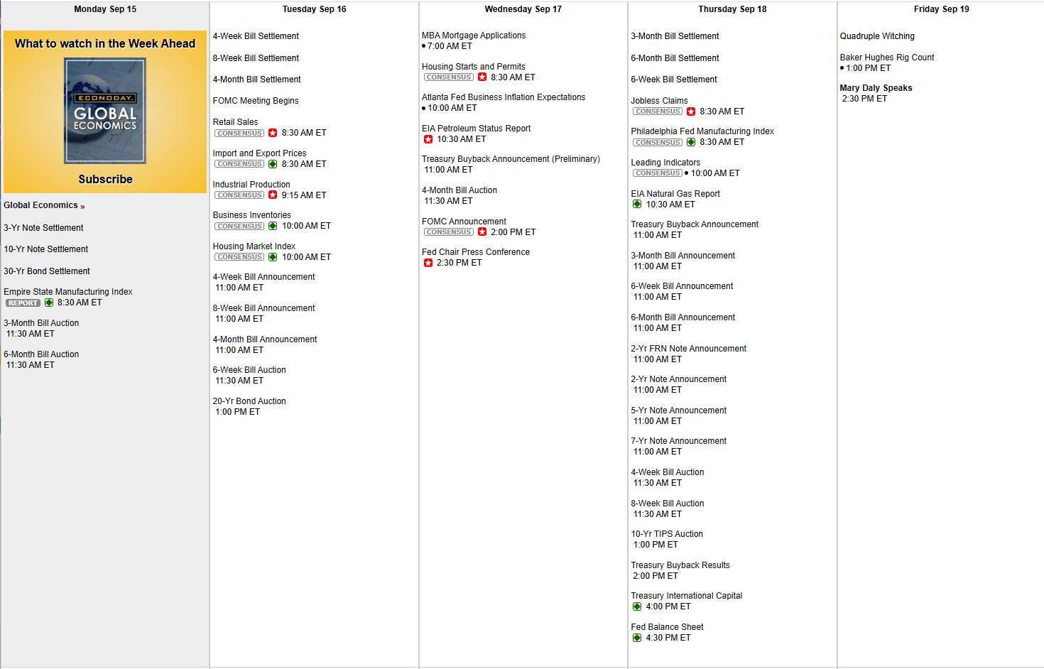 And, of course, aside from the FOMC Decision and Powell’s speech on Wednesday, we had Empire State Manufacturing this morning which, of course, was -8.7, plummeting from 11.9 last month, which seemed like BS anyway. This is yet another Recessionary warning sign flashing red… Lots and lots of auctions for our massive debts and Retail Sales, Industrial Production and Housing tomorrow, Atlanta Fed and more Housing on Wednesday, Philly Fed, Leading Economic Indicators on Thursday and Friday is Quarterly Options Expirations and that could be chaos as well: