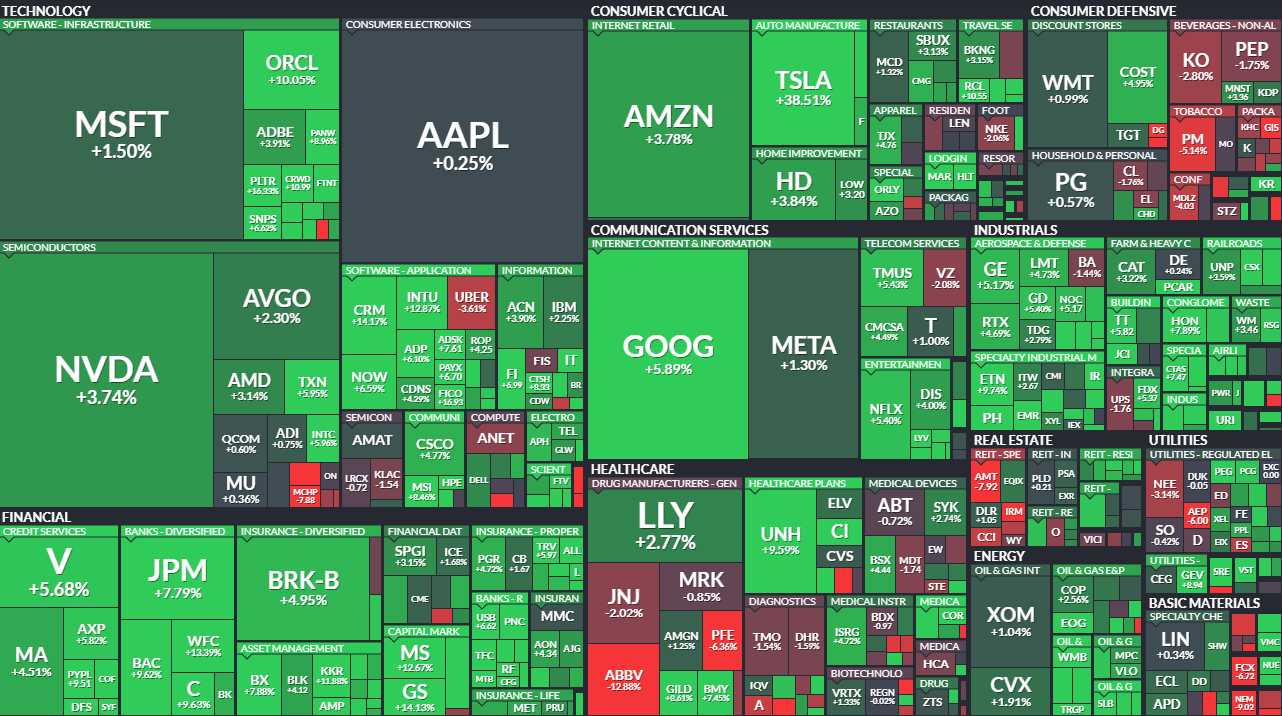 Banksters are huge winners, UNH is up 20% as we go back to infinite billing and finite coverage models. And, of course, it's good to be TSLA - up 38% ($400Bn) in a week!