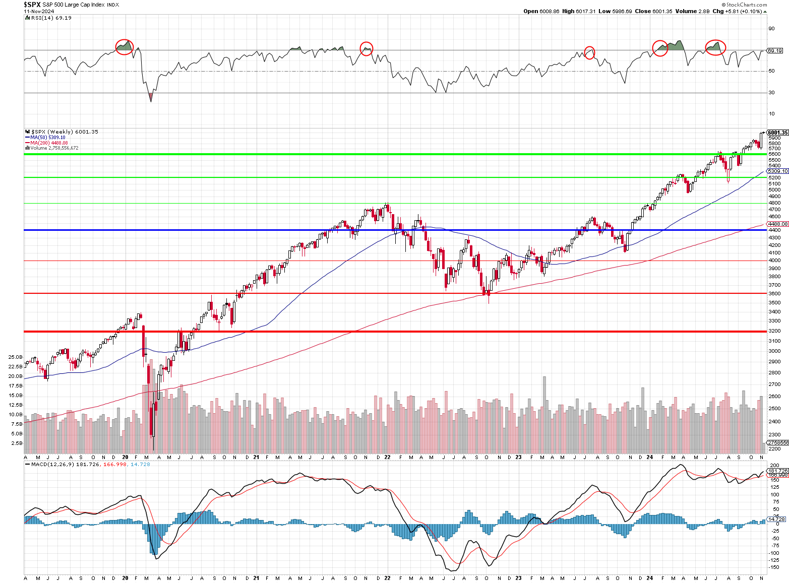 The top of our expected range for the year was 5,600 but we didn't expect Trump to be re-elected and bring back his tax cuts and, as noted by Boaty yesterday, that can certainly get us another 15% next year - but not in a straight line... Overbought is overbought so we're more of a mind-set to lock in our gains at the moment than look for new ones.