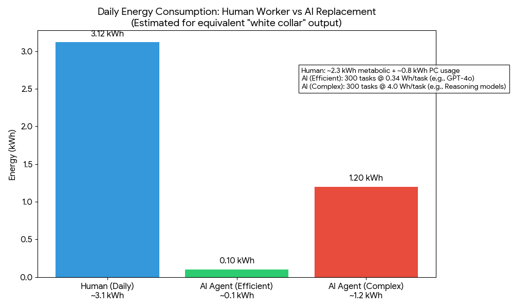The energy calculation makes this explicit: If you only care about efficiency, humans are worse than AI in nearly every metric.